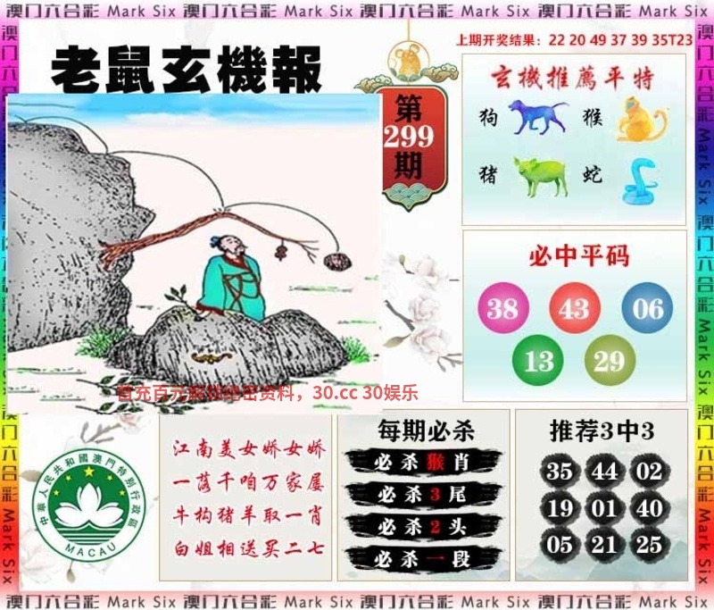 | 298期:天地两肖【地肖+龙猴】开:羊23准 |