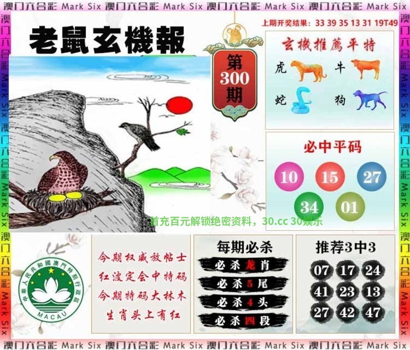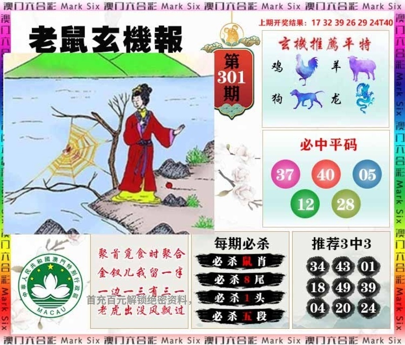| 301期:天地两肖【天肖+鸡鼠】开:牛05准 |
