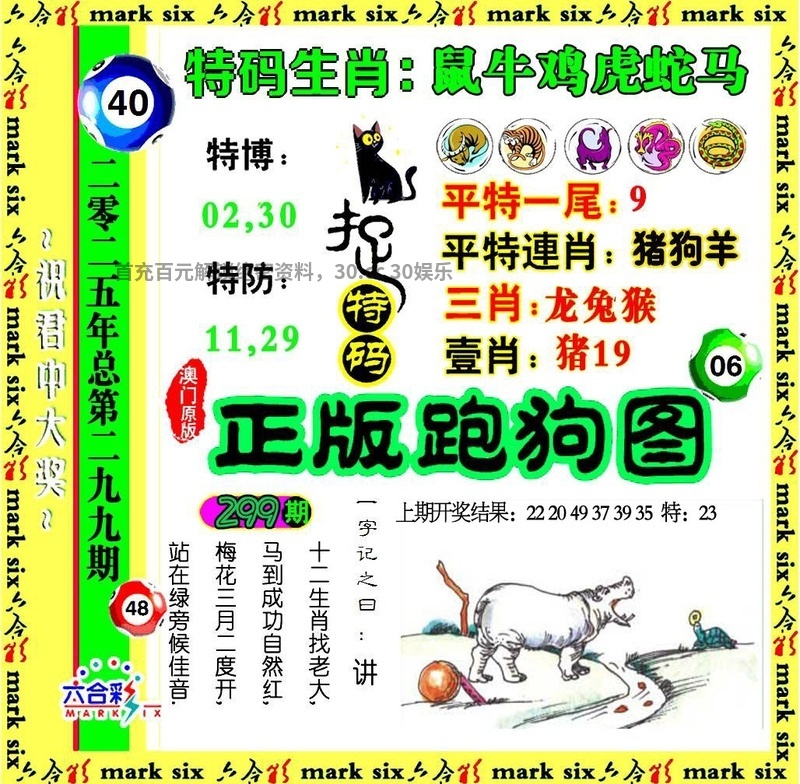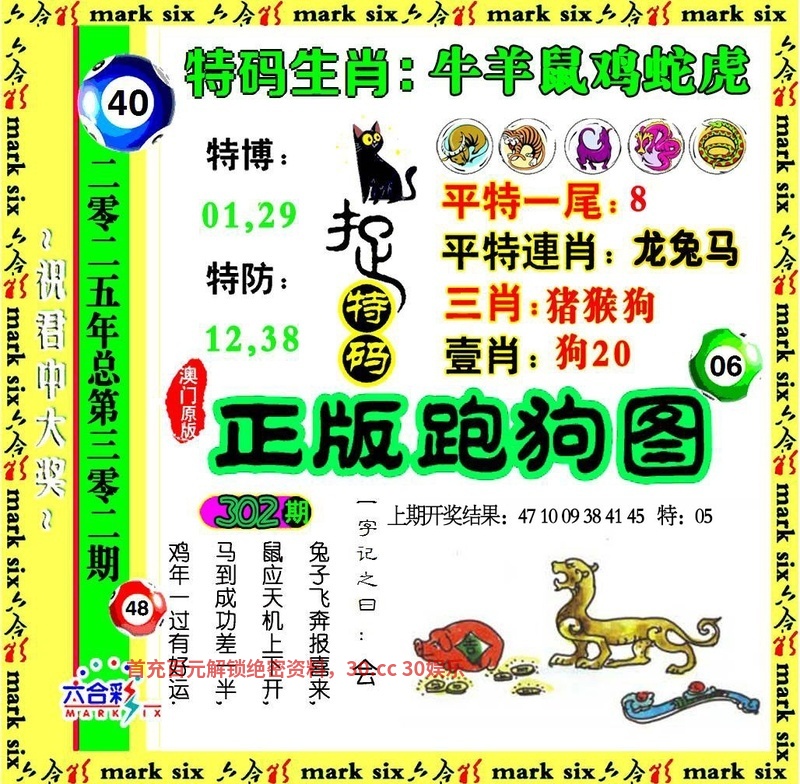 | 302期六肖 | 鼠鸡龙牛马兔 | 开:發00 |
