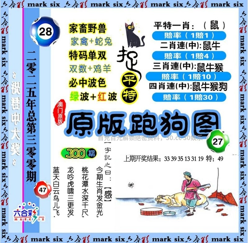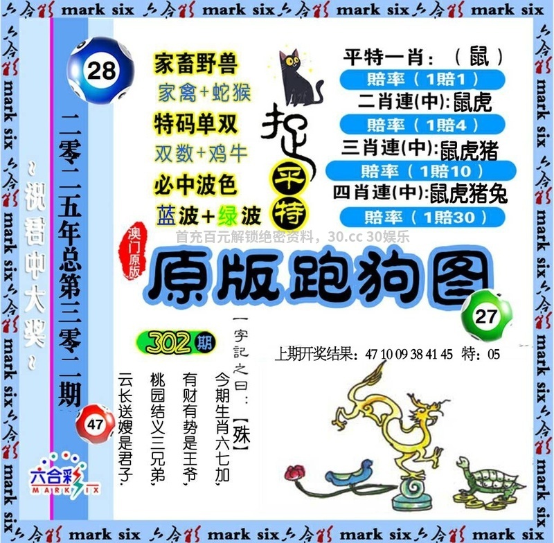 | 302期二肖 | 鼠鸡 | 开:發00 |